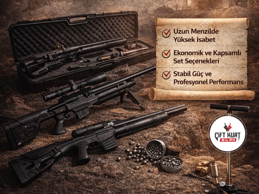 Hatsan Sniper Long PCP set seçenekleri, tüfekle birlikte sunulan tamamlayıcı ekipmanları içerir. Set içeriği genellikle pompa, şarjör, dolum aparatı ve bazı durumlarda optik aksesuarları kapsayabilir. Bu sayede kullanıcılar, ürünü aldıktan sonra ek ekipman arayışına girmeden kullanıma başlayabilir.